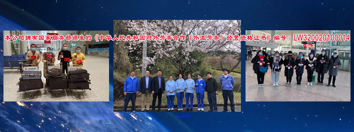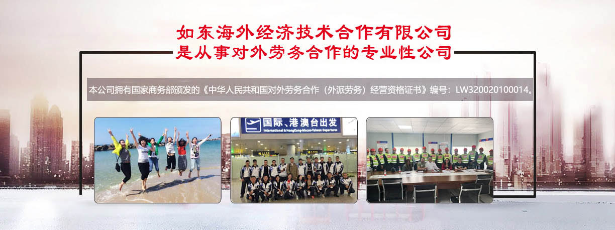 是從事對(duì)外勞務(wù)合作的專業(yè)性公司,本公司擁有國(guó)家商務(wù)部頒發(fā)的《中華人民共和國(guó)對(duì)外勞務(wù)合作(外派勞務(wù))經(jīng)營(yíng)資格證書》編號(hào):LW320020100014。從一九九五年開展勞務(wù)合作以來(lái),積極開拓進(jìn)取,先后向日本、加拿大、新加坡、韓國(guó)等國(guó)家派遣勞務(wù)人員近1萬(wàn)5千余人。勞務(wù)合作行業(yè)主要有服裝(車工、裁剪、整燙、制板、維修、車間管理)、針織業(yè)(織布、漂染、針織、橫機(jī)、套口羊毛衫工)、建筑工程(技術(shù)人員、瓦工、鋼筋工、拌灰工、木工、油漆工、電工、鋁合金工、水暖工等)、機(jī)械工(銑床、車床、沖床、鉆床、鑄造等)電焊工(壓力容器、亞弧焊、建筑設(shè)備安裝、船舶、管道工)、遠(yuǎn)洋捕撈(職務(wù)船員、普通漁工、水手),高級(jí)廚師(川菜、粵菜、京菜、淮揚(yáng)菜)、電子裝配、園藝、蔬菜種植、桑蠶飼養(yǎng)、海、淡水養(yǎng)殖、護(hù)士、翻譯(英語(yǔ)、日語(yǔ)、韓國(guó))等,日本辦事處設(shè)在日本東京、廣島主要負(fù)責(zé)管理和服務(wù)日本研修生及貿(mào)易方面的聯(lián)絡(luò)工作,國(guó)外辦事處和中國(guó)公司現(xiàn)有工作人員25人,專職勞務(wù)工作人員10人,從事勞務(wù)行業(yè)均10年以上,翻譯、培訓(xùn)教師5人,外教2人,會(huì)計(jì)3人,業(yè)務(wù)人員5人。